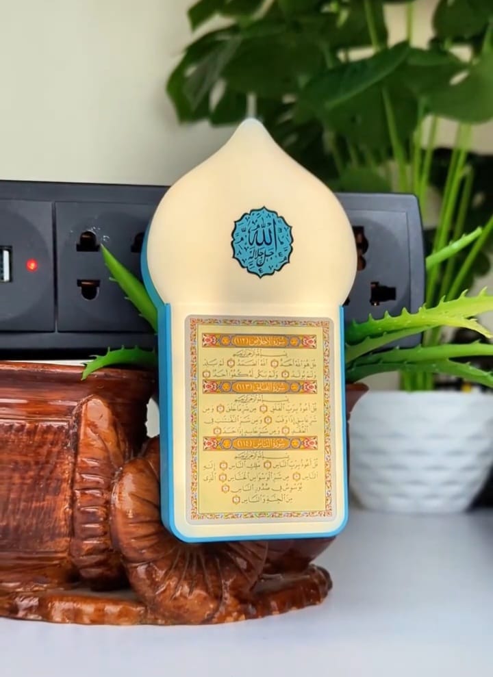 কোনো ঘরে যদি নিয়মিত কোরআন তেলাওয়াত করা হয়, তাহলে সেই ঘরে মহান আল্লাহ বারাকাহ দান করেন। এটি এমন একটি ডিভাইস যেটি ইলেকট্রিক সকেটের সাথে প্লাগ করলেই কুরআন তেলাওয়াত শুরু করবে এবং ড্রিম লাইট হিসেবেও ব্যবহার করা যাবে।১ বছরও যদি প্লাগ থেকে খোলা না হয় ১ বছর পর্যন্ত কোরআন তেলাওয়াত চলতেই থাকবে। রাতে ঘুমানোর সময় তেলাওয়াতের সাউন্ড কম/বেশি এডজাস্ট করে তেলাওয়াত ছেড়ে এবং ড্রিম লাইটের আলো কম/বেশি এডজাস্ট করে ঘুমিয়ে পড়ুন। এই কুরআন তেলাওয়াত সকল অদৃশ্য/অশুভ শক্তি থেকে আপনার ঘরকে সারারাত পাহারা দেবে ইনশাল্লাহ। ঘুম থেকে উঠে আনপ্লাগ করুন।